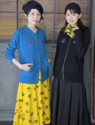 南天刺繍ケーブルニットパーカー/