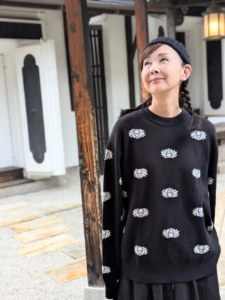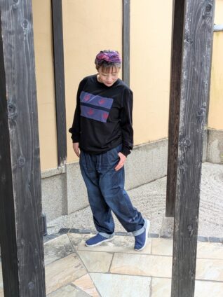 ございます。受注会アイテムの南天刺繍ワイドテーパードデニムと合わせてみました。