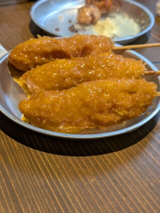 黙々とたべていたのがこちらの味噌とカレーの串カツ。