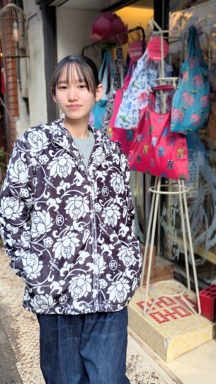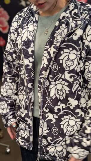 蓮唐草柄を全面にプリントした蓮唐草フリースが入荷しました!