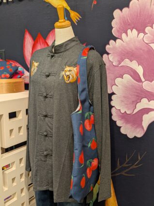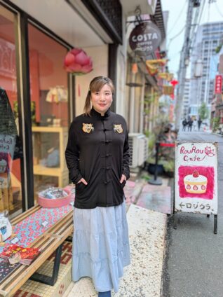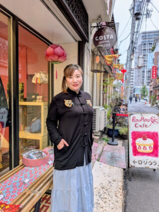 「カチッとしすぎないチャイナ風」であることです。ゆったりシルエットなので、体のラインを拾わずリラックスして着られます。